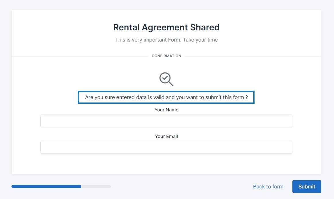Message that will appear after submitter will fill all required form data but before form is finally submitted.