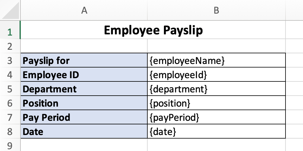 **A cell with a placeholder will be replaced with the provided value during document generation.**