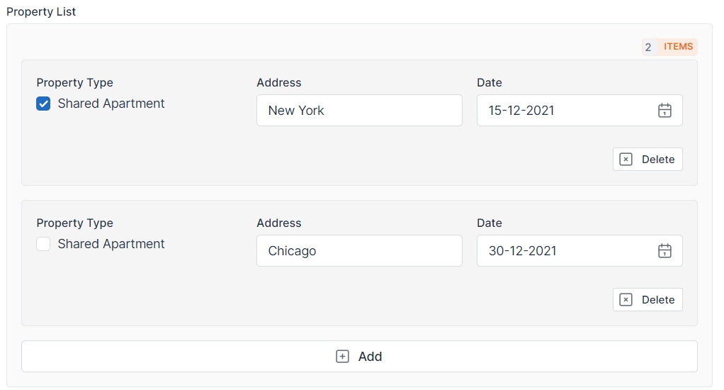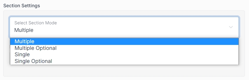 “Multiple Optional” - Will wrap adding section item with additional checkbox. You can use it to ask user in the form if he want to add multiple items.